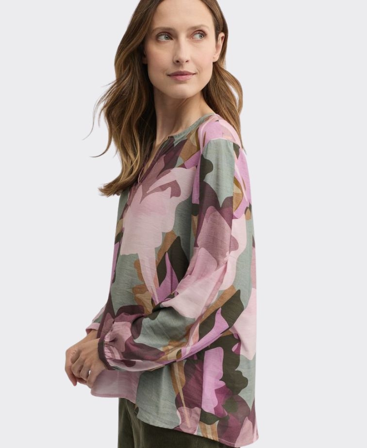 Effortlessly polished with a soft, feminine feel, the Mystical Blouse is crafted from a smooth viscose blend and features an exclusive abstract print in delicate pink and green tones.